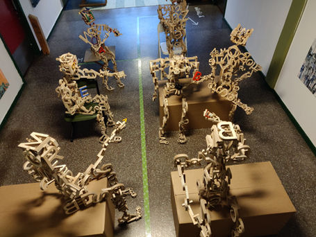 KOKONAISUUS MUUNTUU TILAN JA AIHEEN MUKAAN JOTA MYÖS INSTALLAATION MONTA NIMEÄ KUVAAVAT. INSTALLAATION VOI TILATA HALUTTUUN PAIKKAAN JOSSA SE RAKENNETAAN TAITEILIJA PEKKA HOMASEN AVUSTAMANA. KOKONAISUUS ON HYVIN TOIMINNALLINEN JA SEN VOI HALUTESSAAN JÄTTÄÄ TILAAN VIIKOIKSI RYHMÄN TEKEMÄNÄ TAIDETEOKSENA.